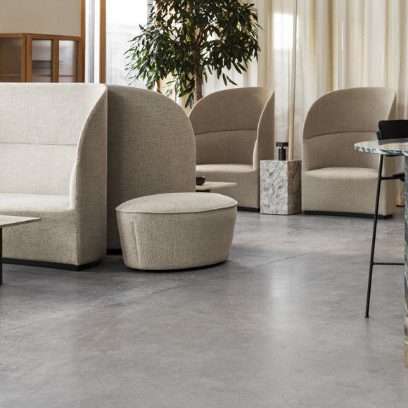 Functional, flexible and fine-looking, the pouf is a versatile interior accessory for a multitude of spaces and uses – as a footrest, side table or extra seat. Cairn Pouf, designed for Menu Design now Audo Copenhagen by Nick Ross, has a gently tapered form that creates an elegant silhouette, making it an ideal accompaniment to our Tearoom and Eave sofas.