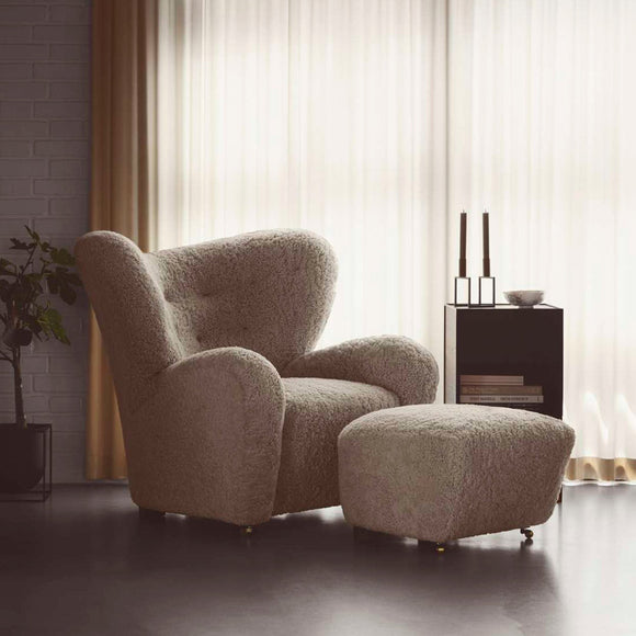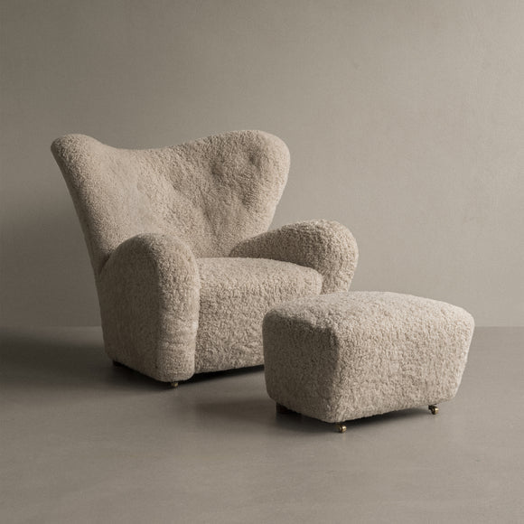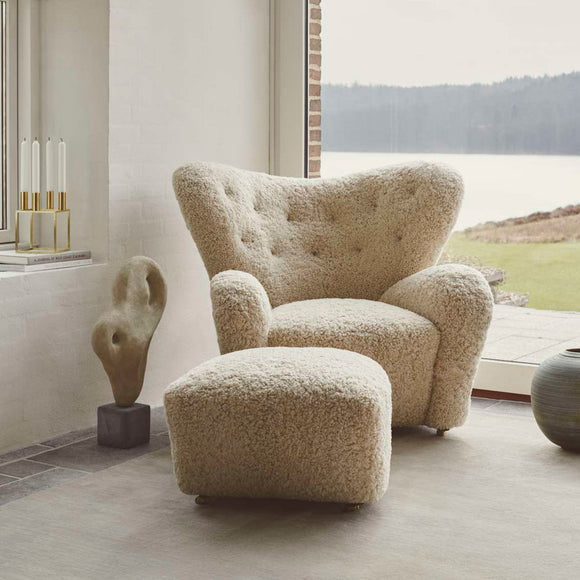 The Tired Man Footstool by Menu Design now Audo Copenhagen has been designed from Flemming Lassen original armchair. The soft lines and round shapes from the armchair is continued in the footstool. Are you already the lucky owner of The Tired Man and want to buy a footstool? The dyeing on furniture in sheepskin may vary. Due to that it is a natural product, where the color, structure and length of the wool fiber can vary from product to product. We therefore recommend that lounge chairs and footstools are purchased together to avoid any differences.
