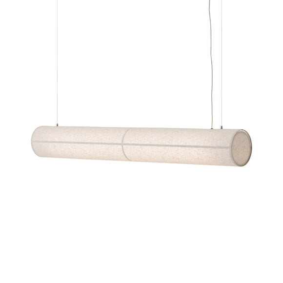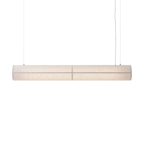 Elevate your space with the Hashira Linear Pendant Light from Audo Copenhagen. Crafted for sophistication, its horizontal design offers a fresh take on modern design, perfect over dining tables or desks. Its streamlined form is suspended by wires, while the raw linen shade, held in place by magnets, adds a clean aesthetic. With a dimmable LED light, enjoy a warm glow suitable for both productivity and relaxation.