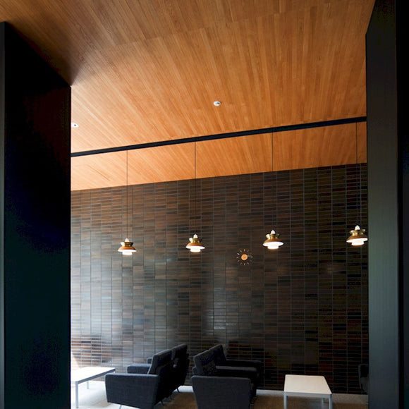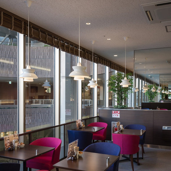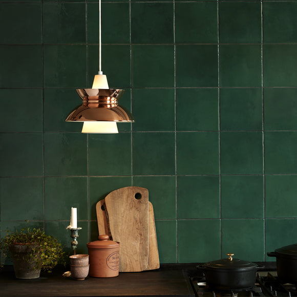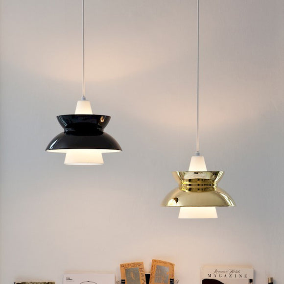 Originally introduced in the 1950th. It was designed in close cooperation between the Navy Buildings Department and Louis Poulsen. The pendant was used for many years in the buildings of the Navy for many different applications such as canteens and offices. The Navy Pendant, which was the name at that time, was widely used because of the unique lighting properties and utility. Not until the early 1980th the product was taken out of the Louis Poulsen catalogues. In recent years, more and more of the old editions have been sold again through antique stores and auctions. This has caused a demand and Louis Poulsen has been asked to re-launch the products. The new version is very close to the original. However, the colors have been updated to correspond to the colors of the time, while the production methods are the same. The shades are still and spun by hand and completed with the fine rolled edge which gives the shades a special optical volume. The brass variant challenges the craftsman as it is spun from a solid brass plate and appears polished.