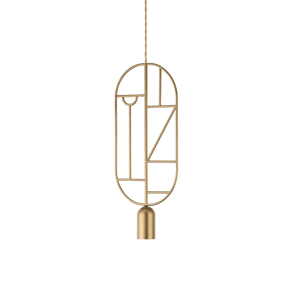 The Wooden Dots Vertical Oval Pendant Light from Nomon is a luxurious and sophisticated addition to any home. Expertly crafted in Barcelona, this pendant light features a beautiful metal frame that takes on an elegant loop formation. The interior of the frame is adorned with geometric shapes and patterns, and a dome-shaped frame neatly houses an LED light source, for a perfectly diffused glow.