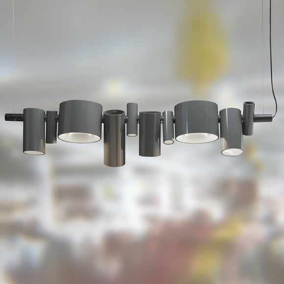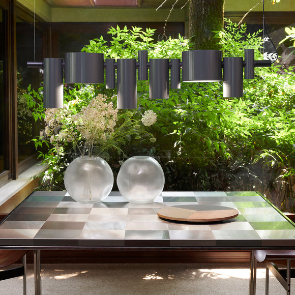 Add a touch of modernity and movement to your home with the Dancing Queen Pendant Light from Oluce. Designed by Victor Vasilev, this sleek and durable LED linear suspension features adjustable glass shades and a streamlined metal frame. Illuminate your space with precision and style with this contemporary and sculptural lighting solution.