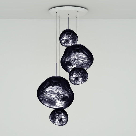Evocative of molten glass, the Melt LED Multi-Light Pendant Light from Tom Dixon brings to mind the interior of a melting glacier or images of deep space. An imperfect, organic and naturalistic light that produces a mesmerizing hotblown glass effect, this pendant light offers imperfect beauty for accenting a dining room table, living room seating group, or as part of an entryway vignette. Outfitted with LED technology for a more energy-efficient design, this luminary is available in a variety of finish options to suit your space with gem-like style.