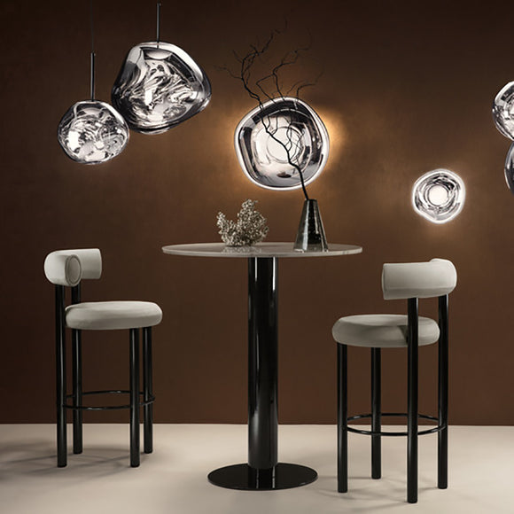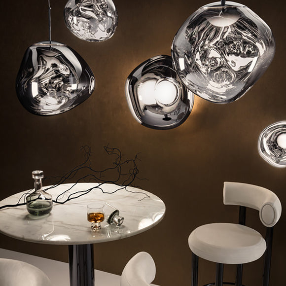 Melt is a beautifully distorted light that creates a mesmerizing melting hot blown glass effect. Its surface is reminiscent of the interior of a melting glacier or images of deep space. In 2019 Tom Dixon has enhanced their Melt family with a custom-made Tom Dixon LED ring integrated into the fitting.