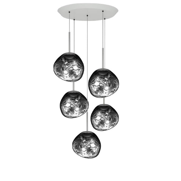Melt is evocative of molten glass, the interior of a melting glacier or images of deep space. An imperfect, organic and naturalistic light that produces a mesmerizing hotblown glass effect. The Melt family is now available with a new custom-made Tom Dixon LED ring.
