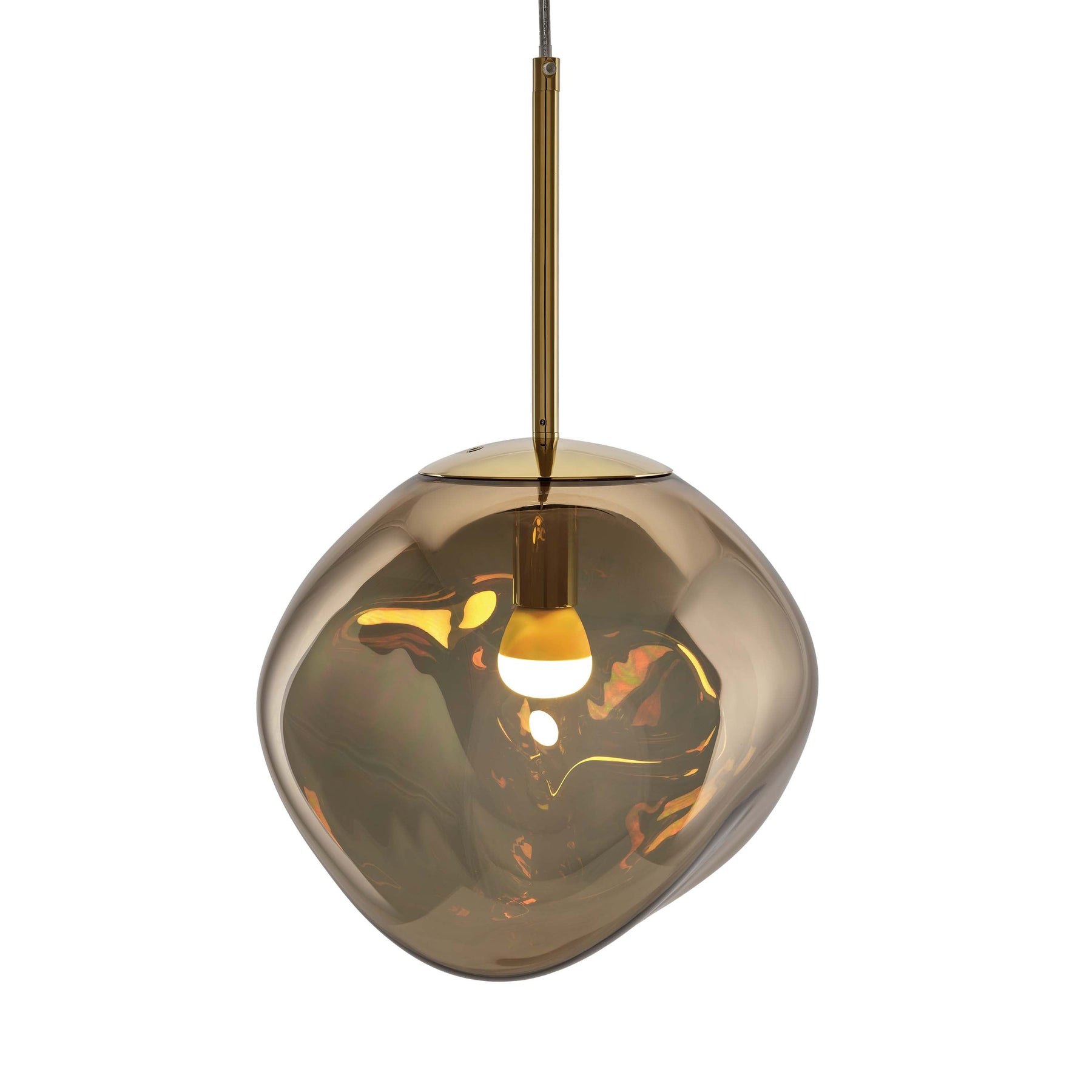 Melt is a beautifully distorted light that creates a mesmerizing melting hot blown glass effect. Its surface is reminiscent of the interior of a melting glacier or images of deep space. In 2019 Tom Dixon has enhanced their Melt family with a custom-made Tom Dixon LED ring integrated into the fitting.