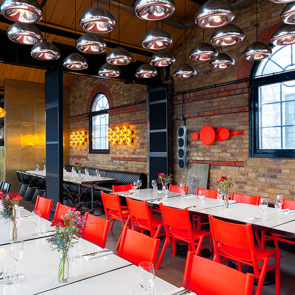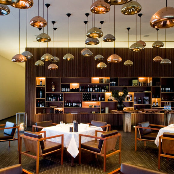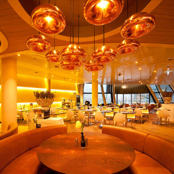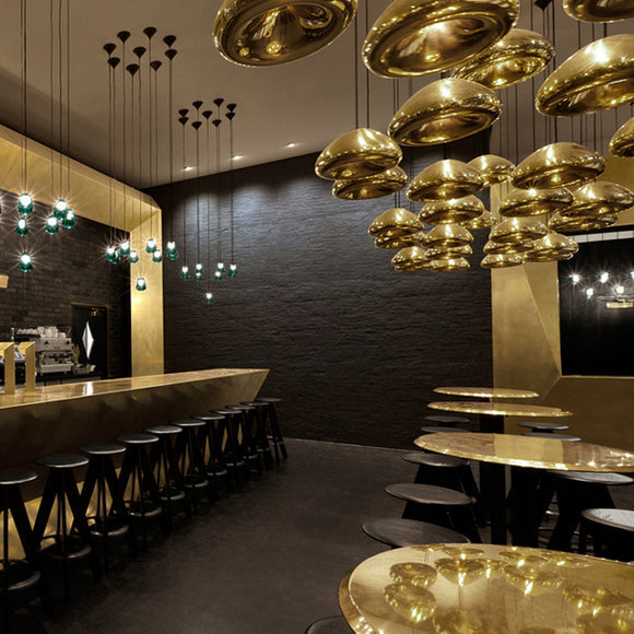Inspired by the metallic beauty of the Olympic medals, the Void LED Pendant Light from Tom Dixon is a compact, yet inspiring lighting design. Crafted from solid brass sheets which are pressed, spun and brazed, this recessed pendant light features double walls to reflect and soften the light emitted from a concealed LED bulb. Hand polished to create a mirrored surface, this pendant light makes a dramatic statement when hung solo or clustered in multiples as a dynamic lighting display. Perfect along a kitchen island countertop or as an eye-catching dining room fixture, this pendant is both powerful and energy-efficient thanks to the LED lighting technology.