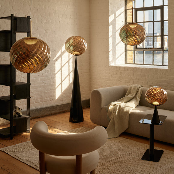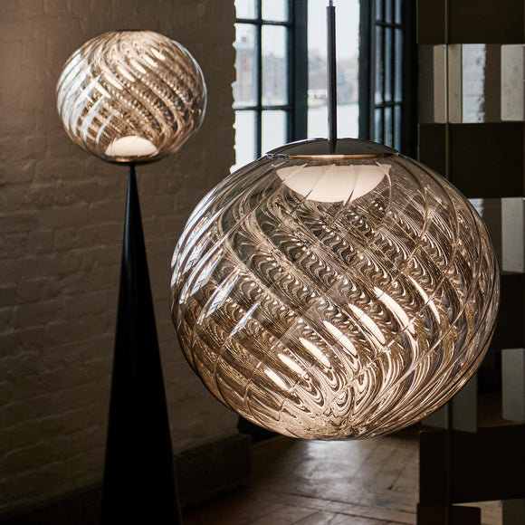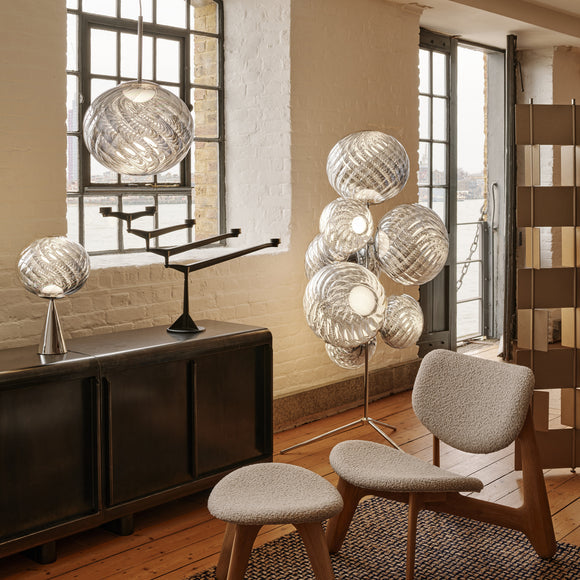 Drawing inspiration from the striking Op Art movement, the Whirl LED Pendant Light from Tom Dixon features a hypnotic spiral design that plays with mirrored reflections. This captivating piece transforms light into a dynamic display of abstract patterns, creating an ever-evolving visual experience. Crafted to intrigue and designed to dazzle, Whirl serves as a bold statement fixture that elevates any interior with its artistic elegance.
