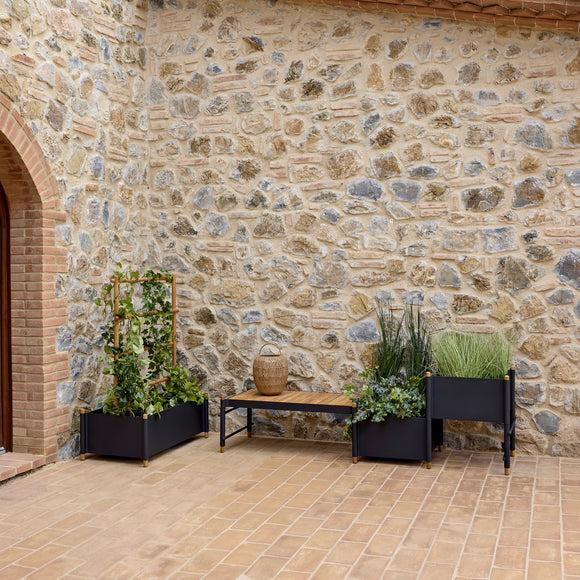 Elevate your outdoor aesthetic with the Sticks Outdoor Large Planter Bench from Cane-line. The Sticks planter legs provide extra height, adding visual interest to your greenery display. Designed as an add-on to the Sticks planter bench system, these legs offer a light and airy design and space-saving solution. Create a sophisticated and playful appeal in your outdoor space.