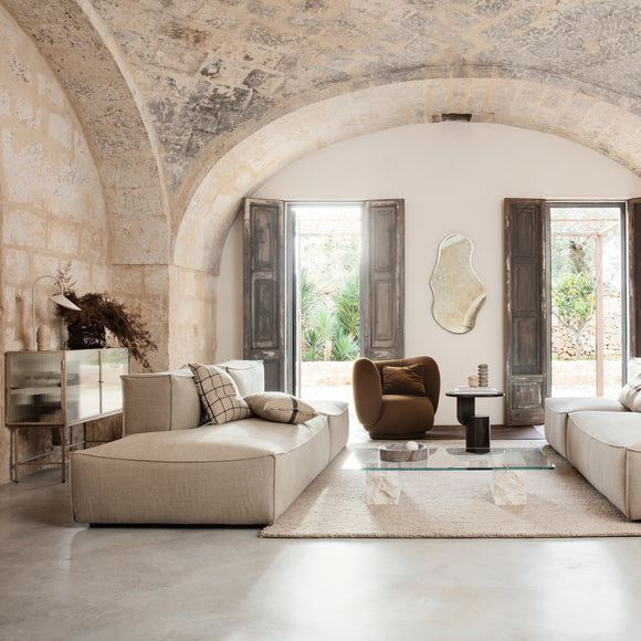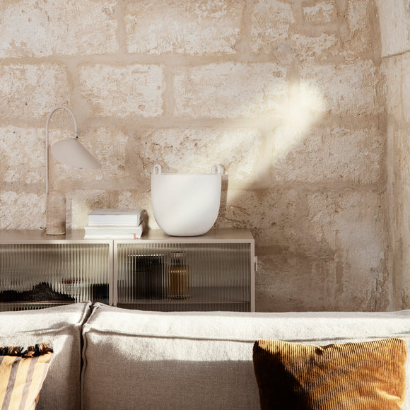 The Haze Sideboard from Ferm Living offers exquisite storage potential with its sleek metal frame and wired glass walls and doors. Unassuming yet elegant, it is the perfect solution for adding discreet storage to any home, concealing clutter in a busy hallway or providing sophisticated style to a bathroom, office or dining room.