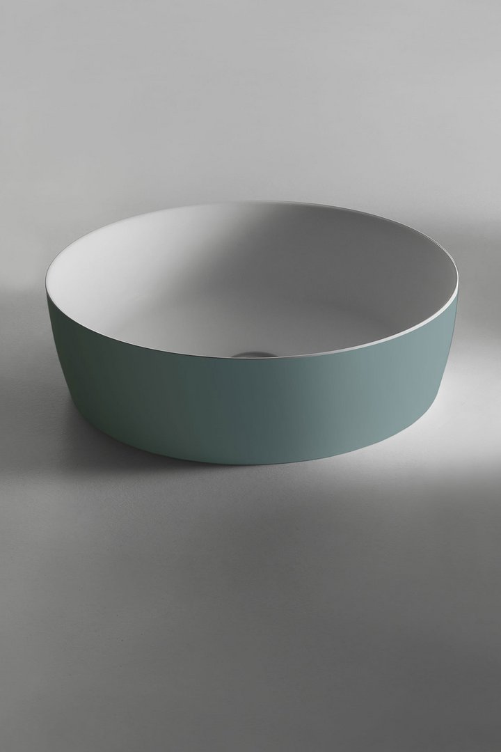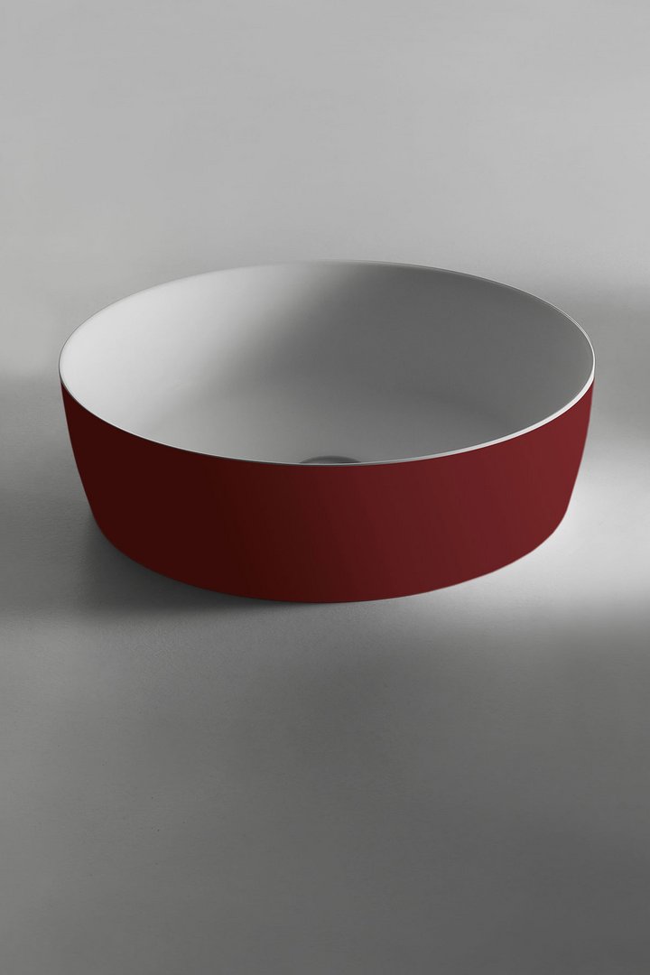• Round top mount sink in Cristalmood or Icemood, available in various colors complete with drain pipe fitting  and open plug.