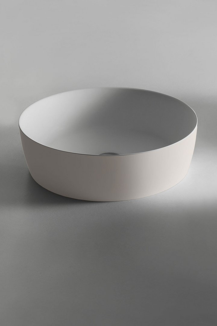 Catino. Many meanings, a form that has evolved over time, a feature, that of holding water. A new material, Flumood, patented by antoniolupi, and the ability to turn into material "malleable" like clay for pottery. The edges are made thin but resistant, the image becomes lighter, as well as the weight, the basin becomes larger, while maintaining the same dimensions. Form and function, perfect blend for the contemporary bathroom.