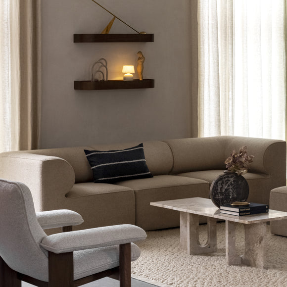 Ready to bring design and function to your home, the Eave Modular 3 Piece Sofa by Menu Design now Audo Copenhagen brings an architectural touch to your space. Inspired by the eaves of large buildings, this sofa features curved upholstered armrests lending a touch of expressive character to your living or lounge area. Perfect for crafting a modular seating group for entertaining or lounging, this sofa can easily be configured to fit your space and meet your needs.