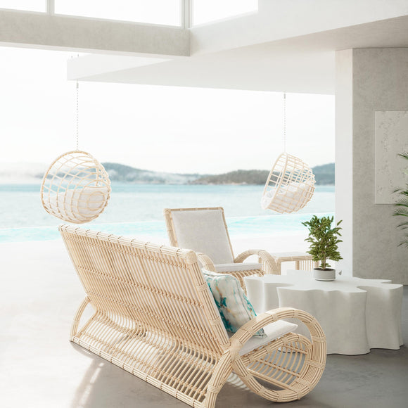A beautiful and captivating design that pays homage to traditional rattan pieces the Paloma 3-Seat Sofa from Azzurro Living, is a must have for any home. It features an organic shape that invokes a sense of comfort and invite you to relax in style. Perfect for both interior and exterior spaces, this sofa is made for all-weather performance, with an almond wicker construction that resists any harsh environments.