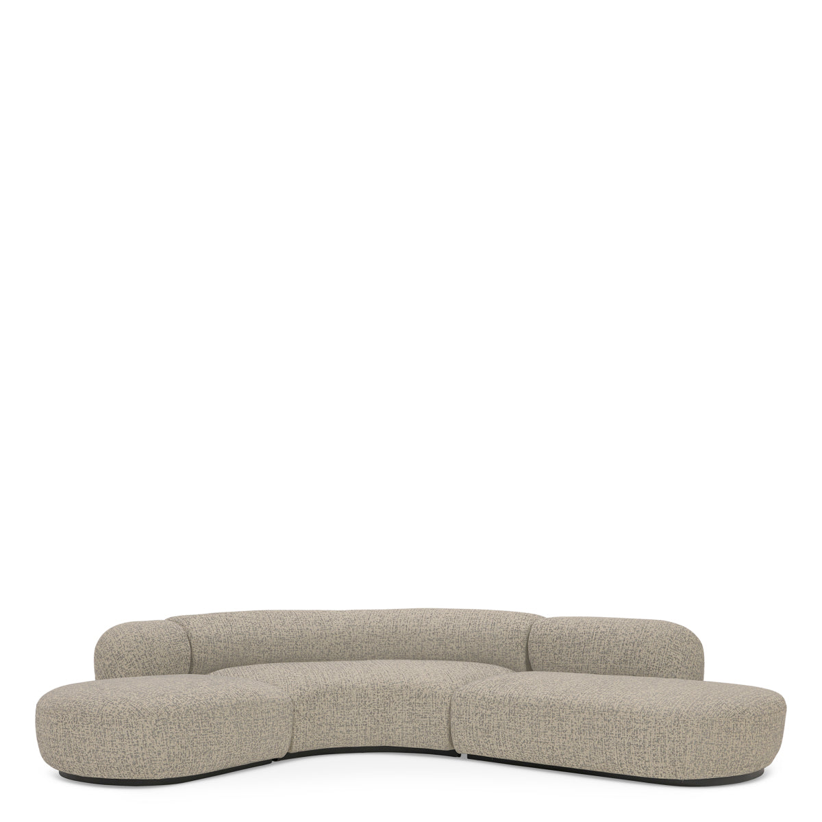 Organic in shape and fully upholstered in dark warm grey-coloured fabric, this sumptuous sofa matches with both modern and traditional interiors. It can smartly divide large, open-plan living areas.W. 300 | D. 257 | H. 70 | SD. 72 | SH. 43 cm