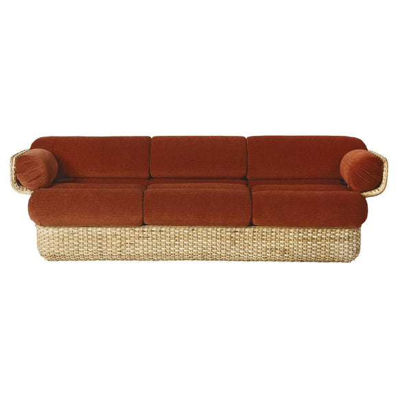 Experience the art of hand-woven rattan with the Basket 3 Seater Sofa from Gubi. Crafted with a sturdy steel core, this sofa offers both strength and sustainability, while its unique form adds a touch of elegance to any space. With interlaced strips and oval stakes, each piece is a testament to the skill and craftsmanship of the makers.