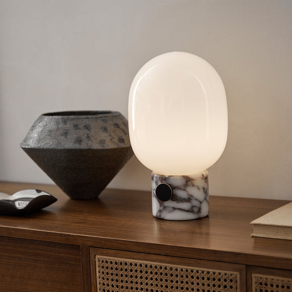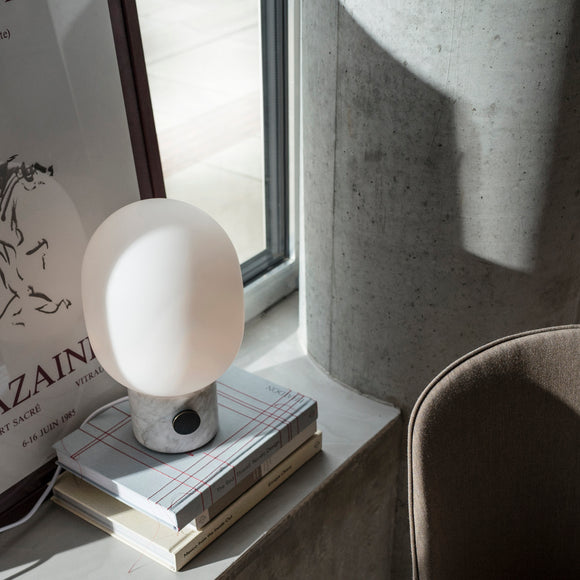 Giving a design overhaul to the classic JWDA Table Lamp, the JWDA Marble Table Lamp by Menu Design now Audo Copenhagen is 12% larger than the original, with a gorgeously sculpted marble base. Originally inspired by the archaic oil lamps of the past, the JWDA’s form has been simplified into a streamlined organic shape that beautifully blends contrasting elements, to form a striking, yet simple lighting design. Outfitted with a G9 frosted shade, the brightness of the light can be easily adjusted by hand to adjust the ambience in a room. Display on a side table in the living room, atop an office desk, or as a quiet focal point in an entryway vignette.
