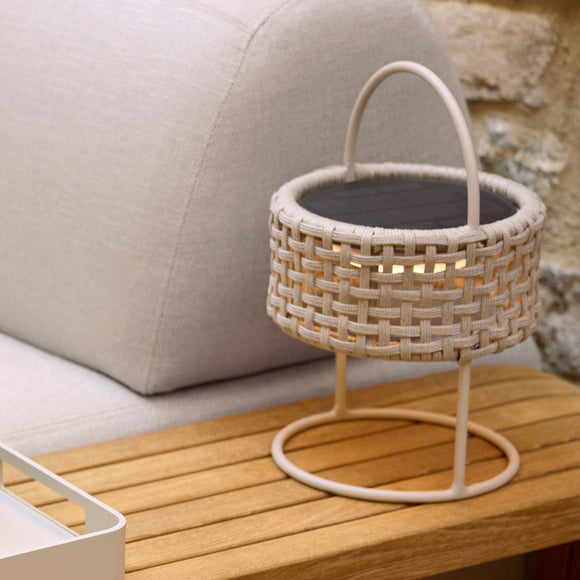 Illuminate your evenings on the terrace with the Illusion Outdoor Table Lamp from Cane-line. Designed for indoor/outdoor living, this decorative and practical lamp features durable, high-quality materials and a convenient handle for easy portability. The moveable LED light source can be used for other lamps in the series. Crafted from weather-resistant Cane-line Soft Rope for a touch of softness and elegance.
