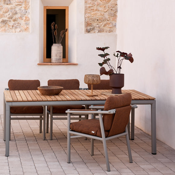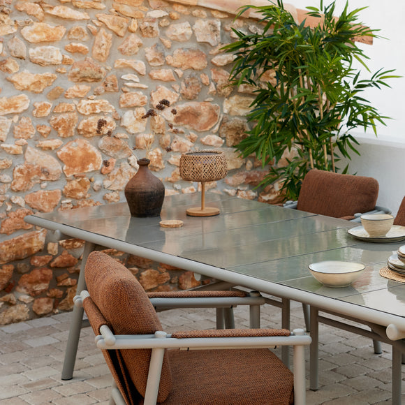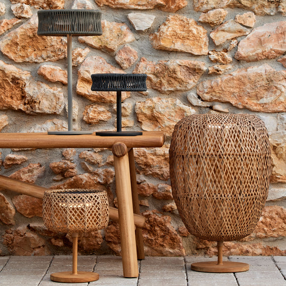 Illuminate your outdoor space with the Illusion Indoor/Outdoor Glow Table Lamp from Cane-line. Made with natural Cane-line Weave and a teak base, this lamp emanates a cosy vibe while extending your evenings with its warm glow. Powered by solar-charged LED units, it offers both functionality and aesthetic appeal perfect for any outdoor setting.
