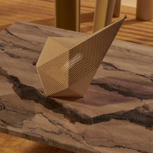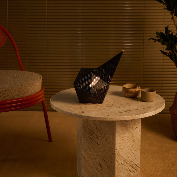 Add a touch of visual appeal to your home with the Bagdad LED Portable Table Lamp from Gubi. Originally designed in 1954, this uniquely crafted lamp showcases Mathieu Matégot's material affinity with perforated metal. Its multifaceted, cubist construction adds an element of playful uniqueness, while the touch-activated dimmer and rechargeable battery make it both a versatile and timeless addition to your space.