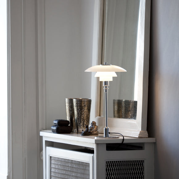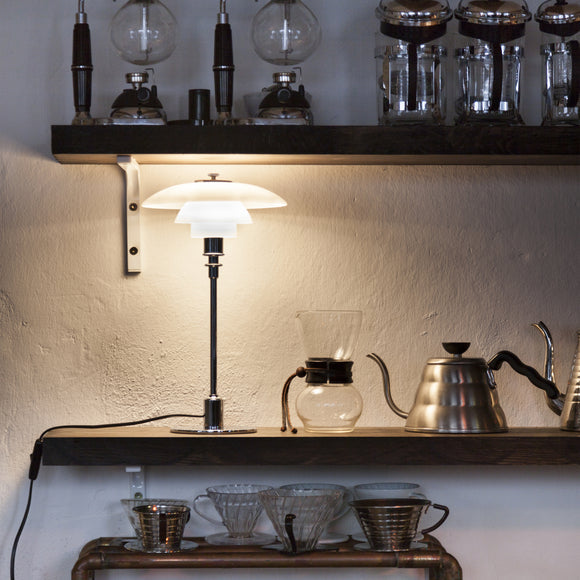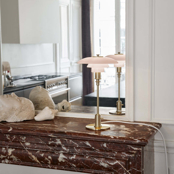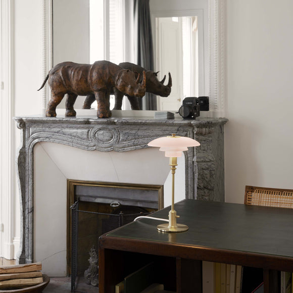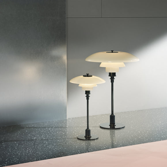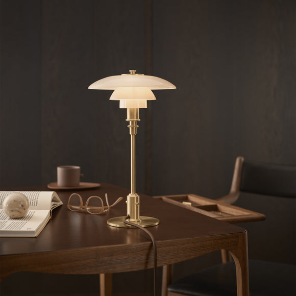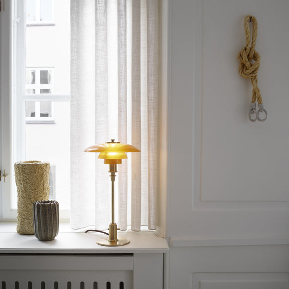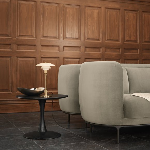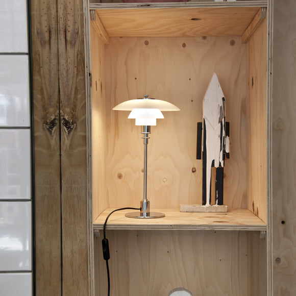 The PH 2/1 Table Lamp from Louis Poulsen provides a sophisticated, harmonious, and glare-free lighting experience. The elegant shade design is based on a logarithmic spiral, orchestrated to create a natural, soft lighting effect. This lamp is a tasteful addition to any living room, designed with the utmost attention to detail and crafted with aesthetic excellence.