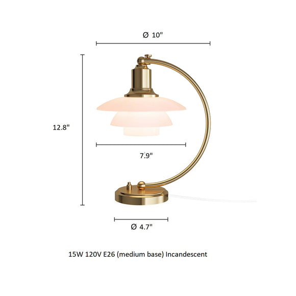 Experience the timeless elegance of the PH Luna Table Lamp from Louis Poulsen. Originally introduced in 1939, this petite table lamp features a characteristic curved stem, finished in luxurious brushed brass and pale rose glass shades providing a glare-free glow. The adjustable head and soft diffused light create a sophisticated ambiance, perfect for any office or living space.