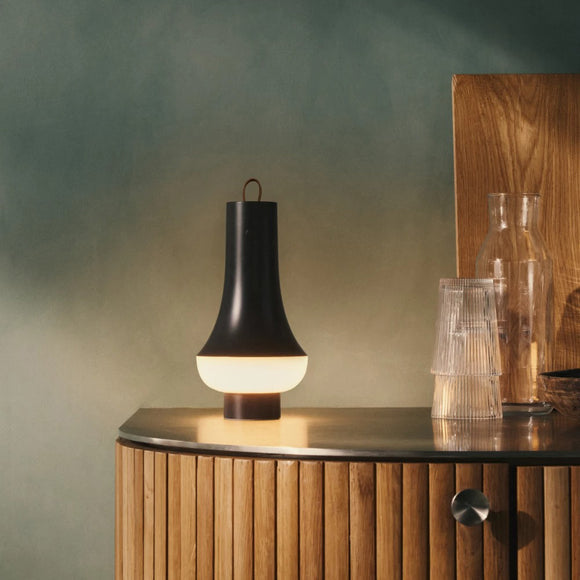 The Tomoshi Portable Table Lamp from Louis Poulsen emits a soft, glare-free ambient light, ideal for creating a welcoming ambiance. Designed with longevity and functionality in mind, this lantern features endless portability, effortless rechargeability via USB, and adjustable lighting for the perfect glow on the go.