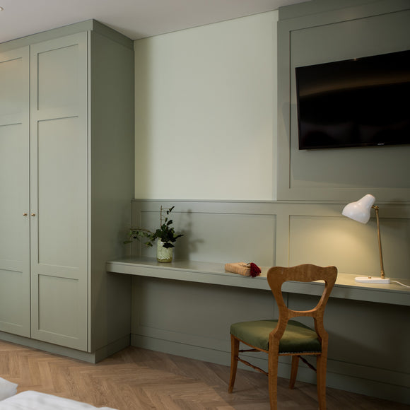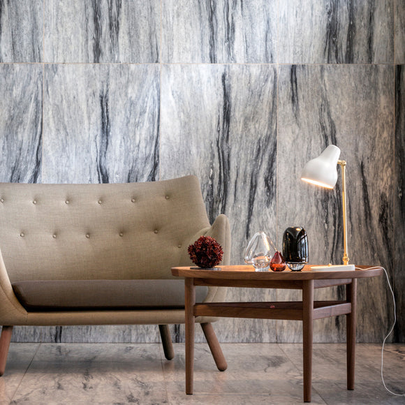The VL38 table lamp was originally designed by Vilhelm Lauritzen in partnership with Louis Poulsen for the construction of the Radiohuset building on Frederiksberg, Copenhagen, which is now home to the Royal Danish Academy of Music.