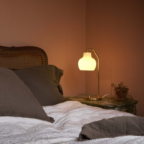 A timeless icon of Danish functionalism, the VL Ring Crown Table Lamp from Louis Poulsen was originally designed in the 1940s by architect Vilhelm Lauritzen. Expertly crafted, this piece features shades of mouth-blown, triple-layered opal glass that provide a soft, uniform, and glare-free illumination. The frame is constructed from untreated satin polished brass, which will develop a unique patina over time. Emitting a gentle, primarily downward-directed light, it’s a true piece of Danish design heritage for the modern home.