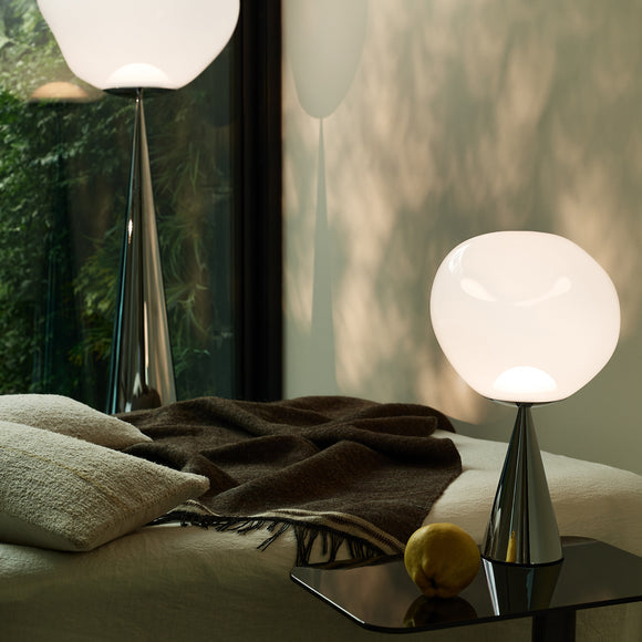 The Melt Cone Fat LED Table Lamp from Tom Dixon is a captivating piece of art, crafted through a unique process to form an unusual and alluring luminescent orb. Its majestic and unique silhouette radiates sophistication and luxury, imbuing your home with a touch of style and exclusivity. Transform your home into a mesmerizing realm of molten glass and deep space – a tribute to nature and art.