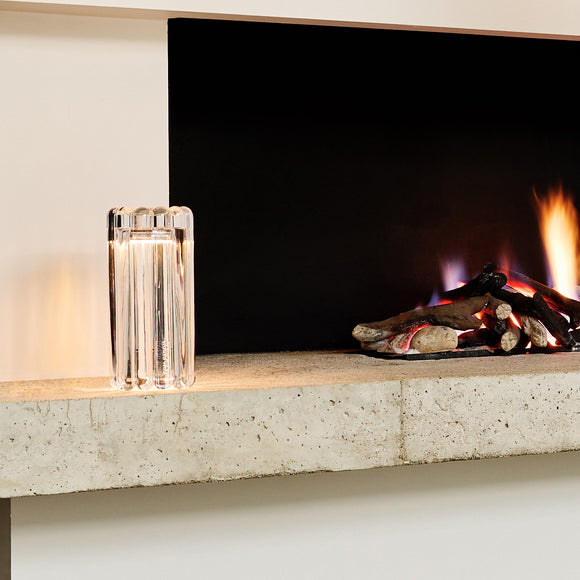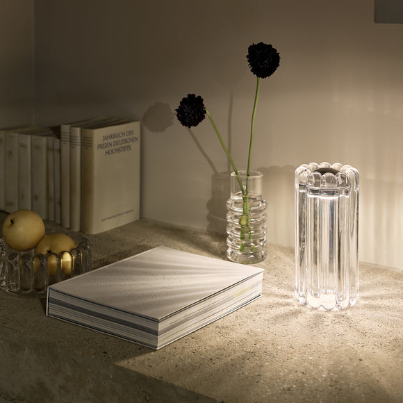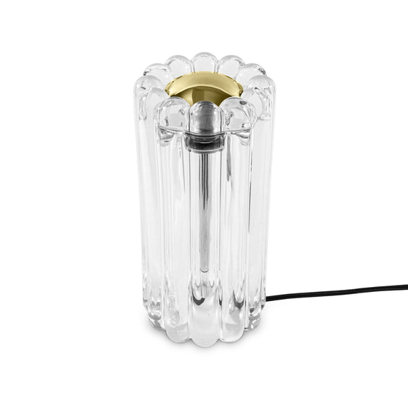 Experience the perfect blend of modern design and lasting durability with the Press LED Table Lamp from Tom Dixon. Crafted with thick industrially pressed glass, it catches and refracts light to create mesmerizing linear and stripy patterns. Outfitted with interchangeable metal domes for a sleeker look, this lamp is built to shine for a lifetime.