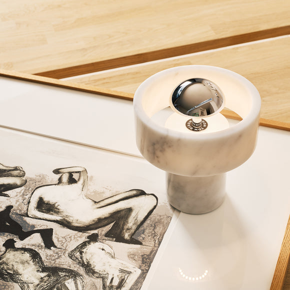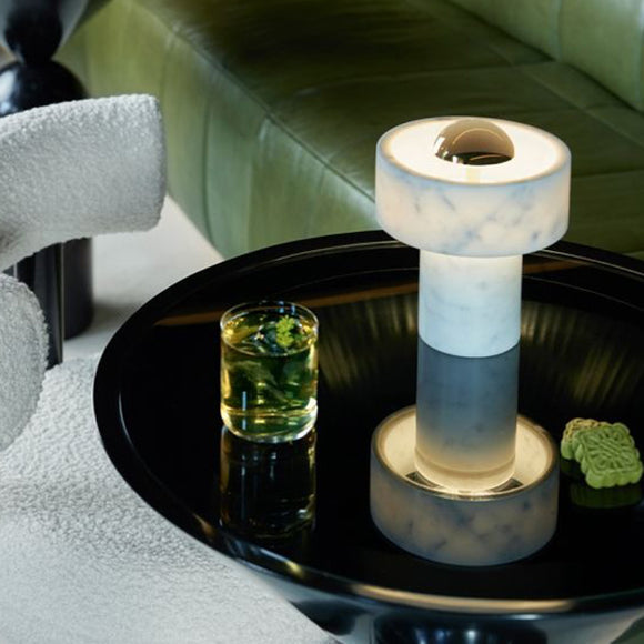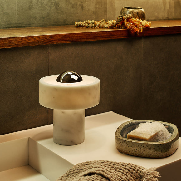 Combining the timeless beauty of marble and an innovative LED design, the Stone Portable LED Table Lamp from Tom Dixon offers luxurious one-of-a-kind style. This sophisticated lamp is designed with a sleek marble ring that appears to be hovering around the light source, creating a warm halo-like effect. Boasting an integrated dimmer and up to 9 hours of battery life, Stone is the perfect blend of elegance and modern convenience.