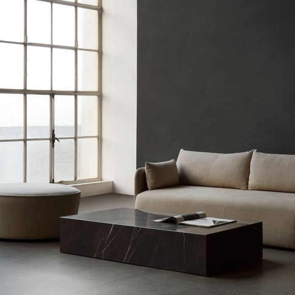 Versatile and timeless, the Plinth Low Coffee Table by Menu Design now Audo Copenhagen is beautiful, sculptural design that highlights whatever objects rest upon it. With no two pieces exactly alike, the naturalness of the marble creates an intriguing contrast within each piece. Perfect accenting a seating group, the spacious surface is ready to hold designer coffee table books, favorite candles, and decor pieces from your travels abroad.
