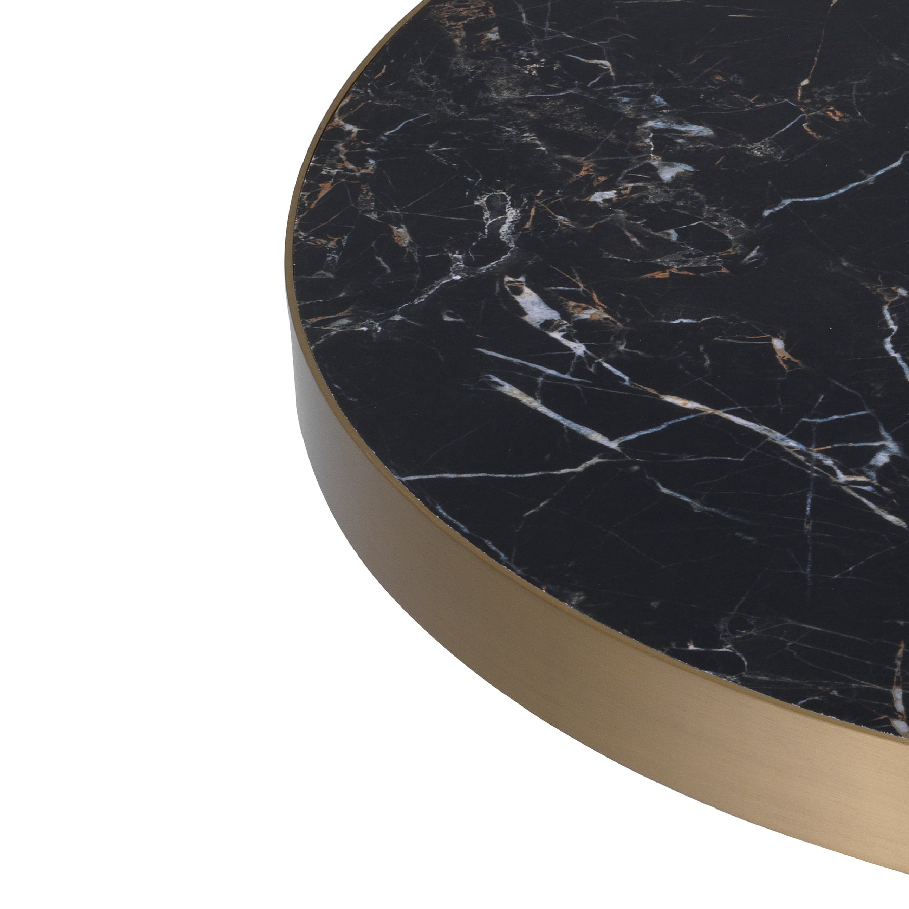 The exceptional tabletop consists of two semi-circular marble plates. Compared to the white marble part, the black marble part is larger and slightly raised. The base and rim of this striking end table have a brushed brass finish.Ø 88 | H. 35 cm