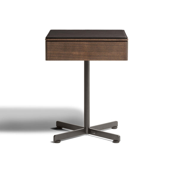 The Bob Side Table, designed by Jean-Marie Massaud for Poltrona Frau, adds a touch of elegance to any room with its stylish yet functional design. Its integrated drawer provides convenient storage, making it perfect as a living room side table or nightstand in the bedroom. With a fine blend of wood and steel, this versatile piece captures the international lifestyle and Kennedian influence for a sophisticated look.