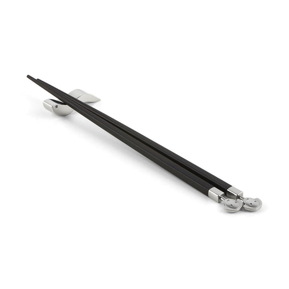 Anna Stick is a sophisticated pair of ebony chopsticks featuring a cast steel figure inspired by Anna G., the iconic muse of Milanese architect Alessandro Mendini. Accompanied by a fish-shaped micro-cast steel stand, this design references Mendini’s unique design language, Mendinigraph, blending artistry and functionality in an elegant dining accessory.