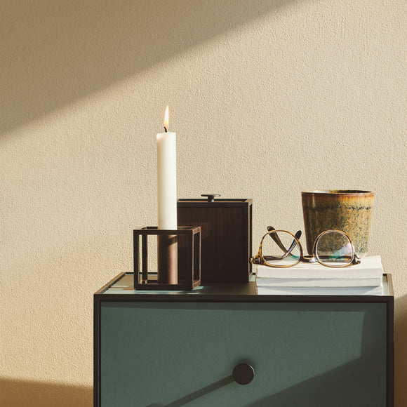 Originally designed in 1962, the Kubus 1 Candleholder by Menu Design now Audo Copenhagen showcases clear, contemporary Functionalist style in a compact decor piece for the home. Showcasing a square frame crafted from metal with a rich matte or metallic finish, this candleholder design holds one candle and makes the perfect addition to smaller dining tables as a centerpiece or as part of a display vignette on a console table or fireplace mantle. Pair multiple together with other pieces from the Kubus collection for a cohesive display or mix and match with various sizes for a centerpiece design that is all your own.