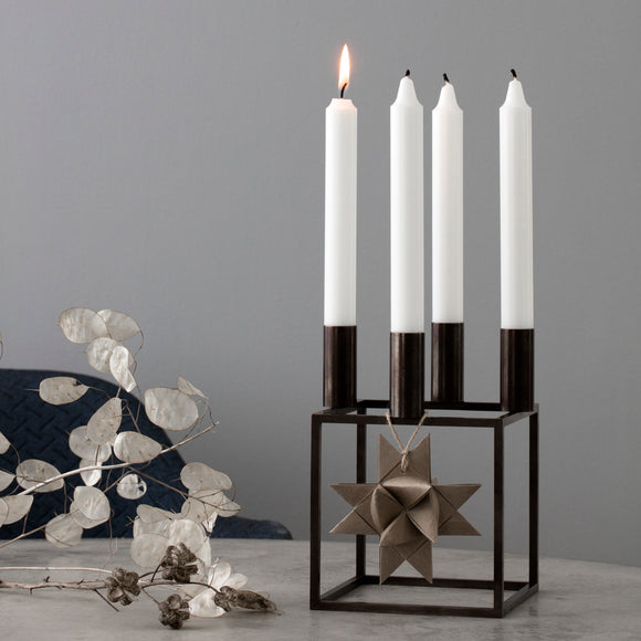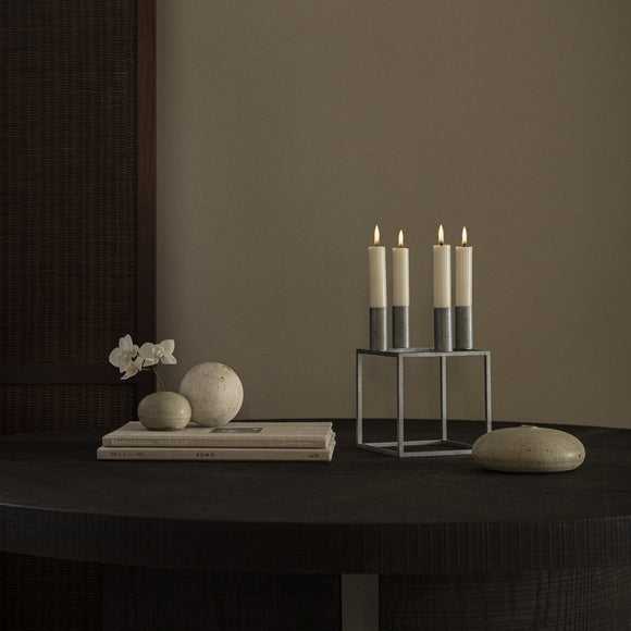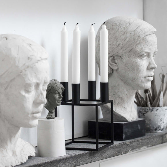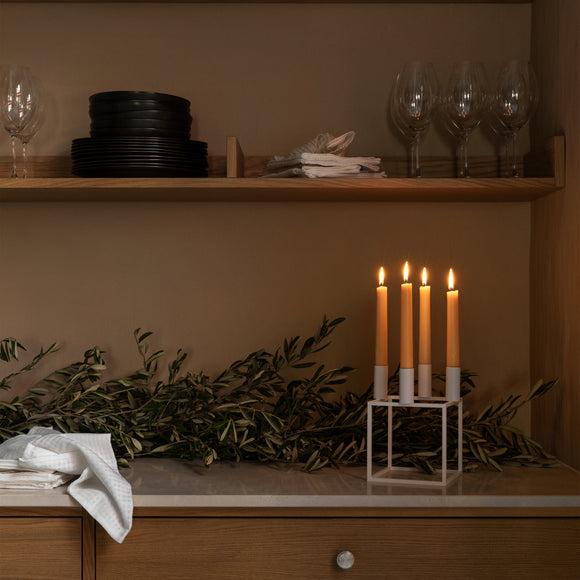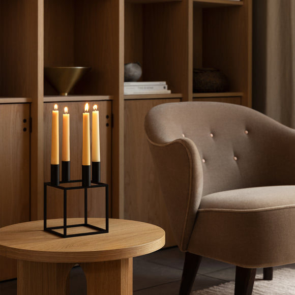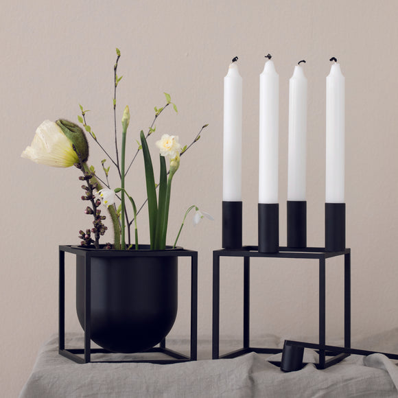 Originally designed in 1962, the Kubus 4 Candleholder by Menu Design now Audo Copenhagen presents clear, contemporary Functionalist style in a chic decor piece for your well-appointed home. Showcasing a square frame crafted from metal with a rich matte or metallic finish, this candleholder design holds four taper candles and makes the perfect addition to round, square, or rectangular dining tables as a centerpiece or as part of a display vignette on a console or coffee table.