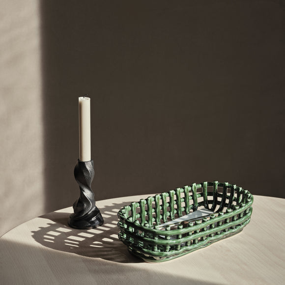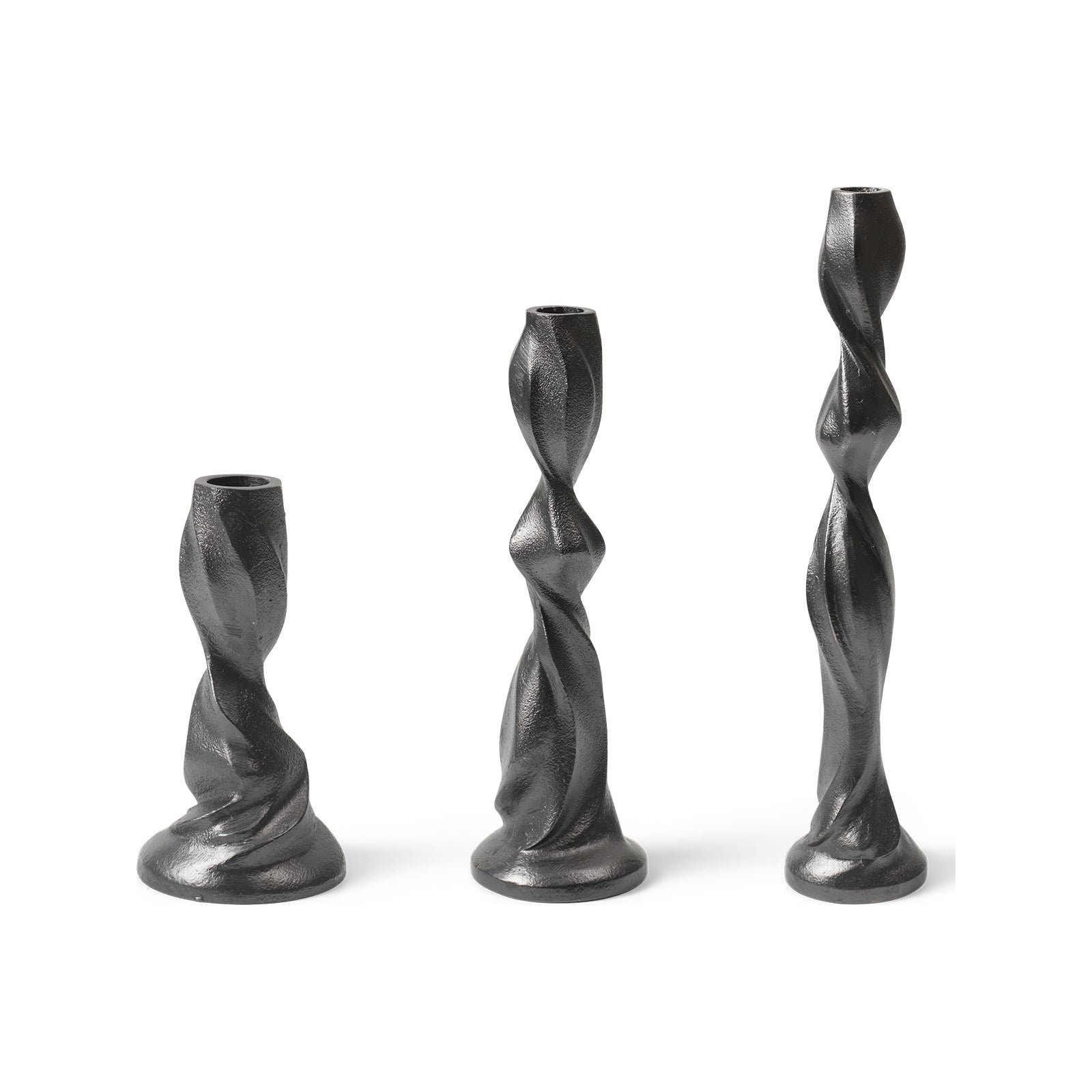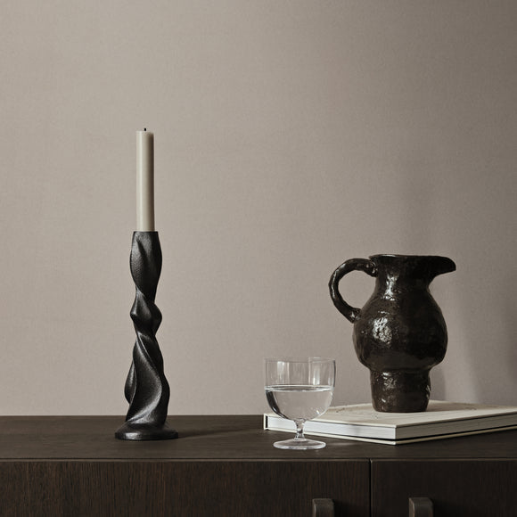 The Gale Candle Holder (Set of 2) from Ferm Living is a stunning, sculptural piece that adds a unique, dimensional quality to any setting. Crafted from recycled cast aluminum, it is an eco-friendly and eye-catching addition to your decor. Inspired by the dynamic patterns of a storm, it will bring a sense of movement and intrigue to your space.