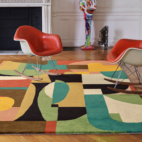 Indulge in the vibrant liveliness and strength of the Jazzy Rug from Toulemonde Bochart, designed by artist and designer Pascale Risbourg. Made from hand-spun wool, this multicolored hand-knotted rug features a harmonious color palette and intricate patterns, evoking the visionary works of its creator. Enjoy easy maintenance with just a brushless vacuum and a thorough clean.
