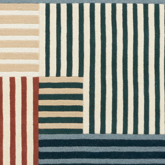 Elevate your interior space with the Mackintosh Rug from Toulemonde Bochart. Hand-tufted with a Nordic-inspired geometric patchwork, this wool rug adds aesthetic finesse to any room. The cool shades of blue create a refined and soothing atmosphere while its 100% local wool production minimizes its environmental impact. Indulge in luxury and sustainability with this essential centerpiece.