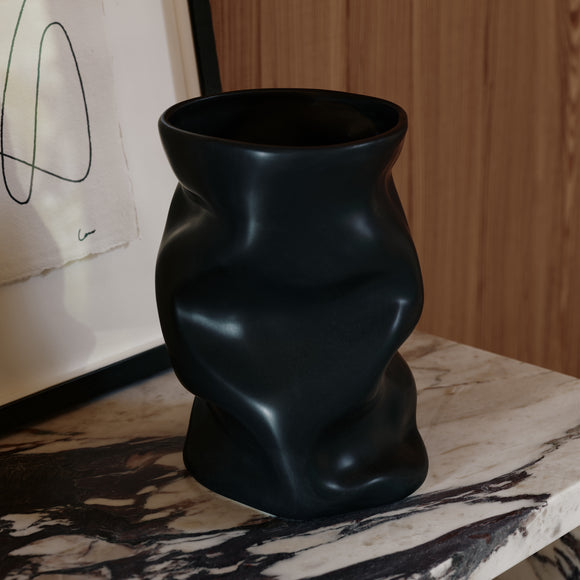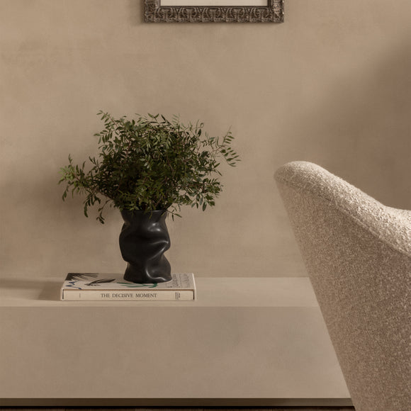 Drawing inspiration from the fluid drapes of fabric, the Collapse Vase by Menu Design now Audo Copenhagen has a soft, organic expression. Whether clustered, paired or used alone, it lends sculptural beauty to modern spaces – with or without the addition of flowers. Each piece is unique due to the firing process.