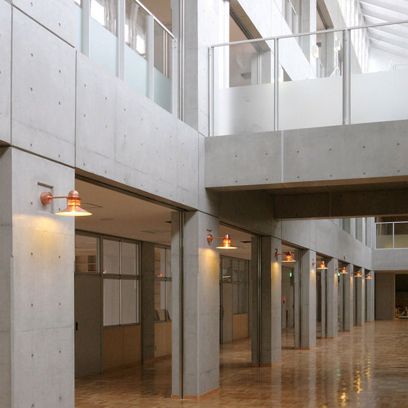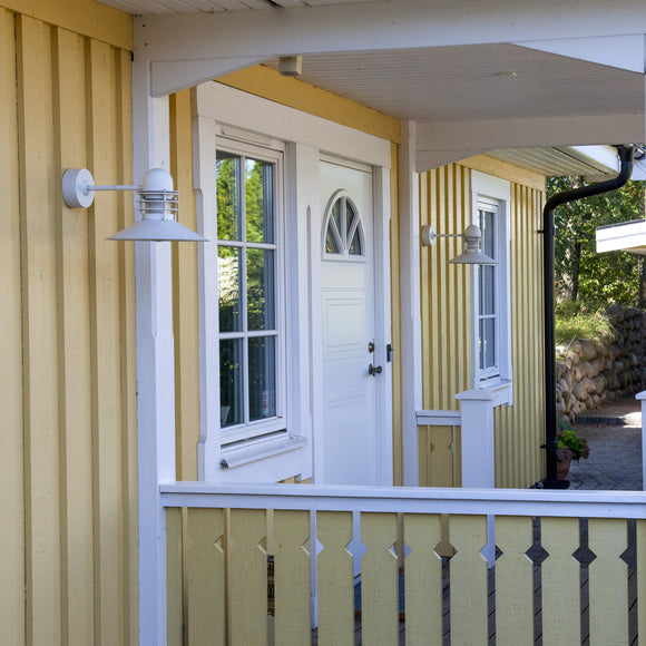 Nyhavn Wall was designed by Alfred Homann and Ole V. Kjær in 1976. Nyhavn Wall won a prize in a competition held by Louis Poulsen for lighting in old and heritage urban areas. Homann explains the idea behind the wall fixture: It was important that the fixture was smaller and more discreet than the other products on the market at that time. The light is characterized by a cone-shaped shade and three anti-glare rings which emit soft light directed upwards.