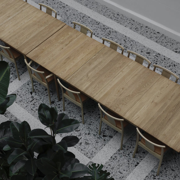 Originally designed for one of Norway’s most monumental buildings, the Oslo Stock Exchange, Merkur by Menu Design now Audo Copenhagen is a modern take on the archetypal dining chair. Using traditional woodworking techniques to create its timeless form, the solid wood design is available with or without armrests and can be partially upholstered in a range of beautiful fabrics and leather to add further comfort.