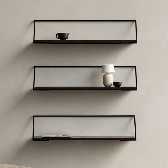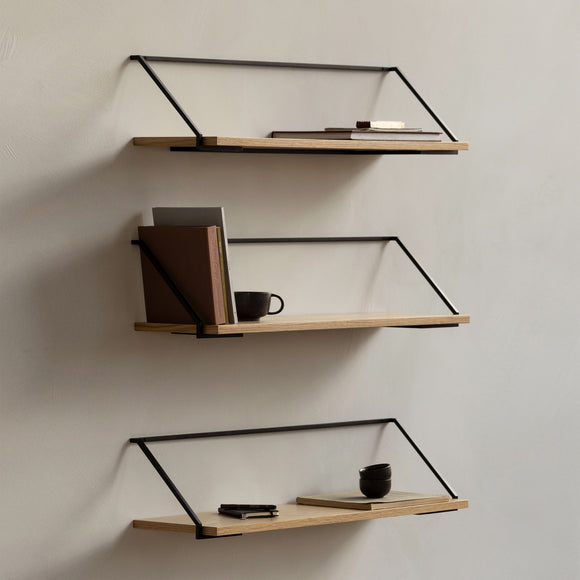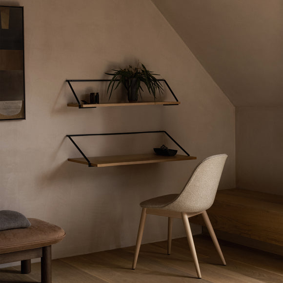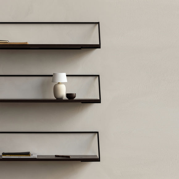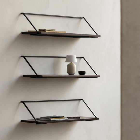 The Rail Shelf by Menu Design now Audo Copenhagen is an adaptation of Japanese designer Keiji Ashizawa’s popular Rail Desk, which takes its cues from the world of architecture and the way in which we use space. Perfectly proportioned from a combination of wood and metal, the wall-mounted design features a lightweight steel bracket, inspired by metalwork handrails, and a tactile wooden shelf, offered in natural or dark stained oak. Elegantly minimal, it fits neatly into spaces to provide an understated yet practical backdrop for favorite objects.