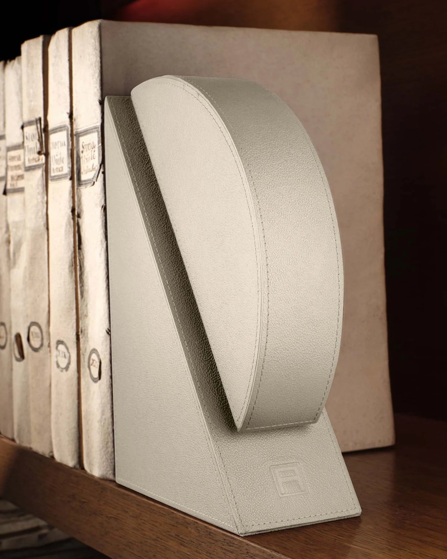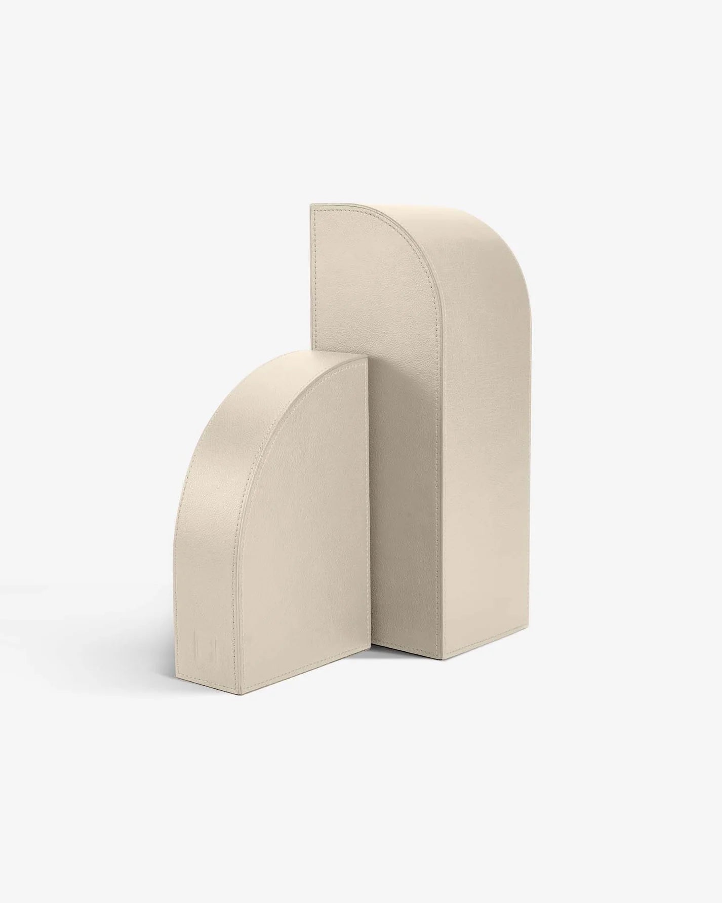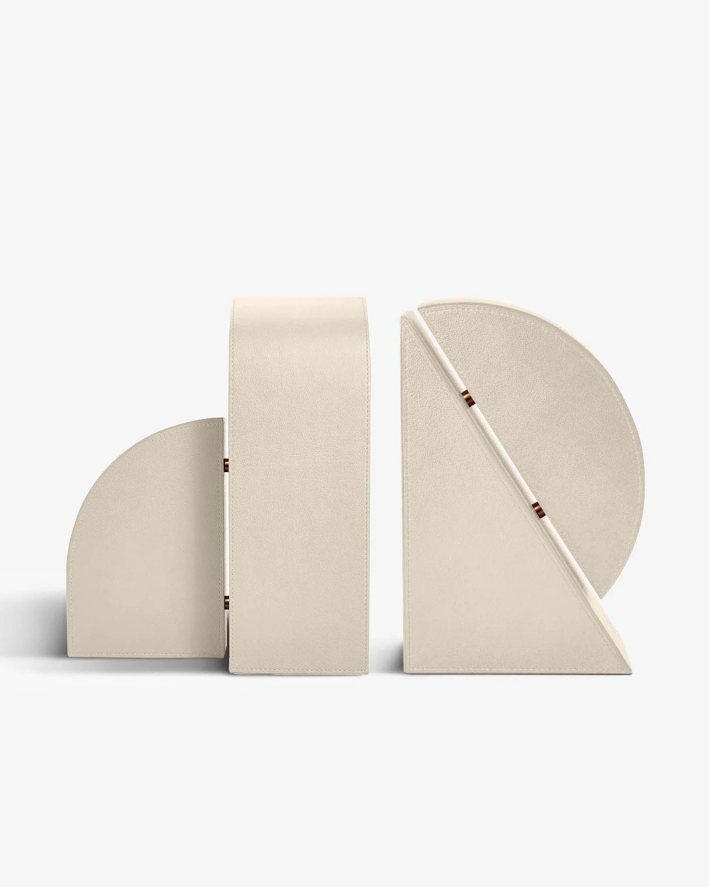 The Cubist Bookends combine the worlds of design and art. Inspired by the iconic art movement, these sculptures are wrapped in pebbled leather and feature subtle brass hardware, making them perfect for cultural connoisseurs. Each piece features its own distinct character, highlighted by smooth curves and a modernist flair.