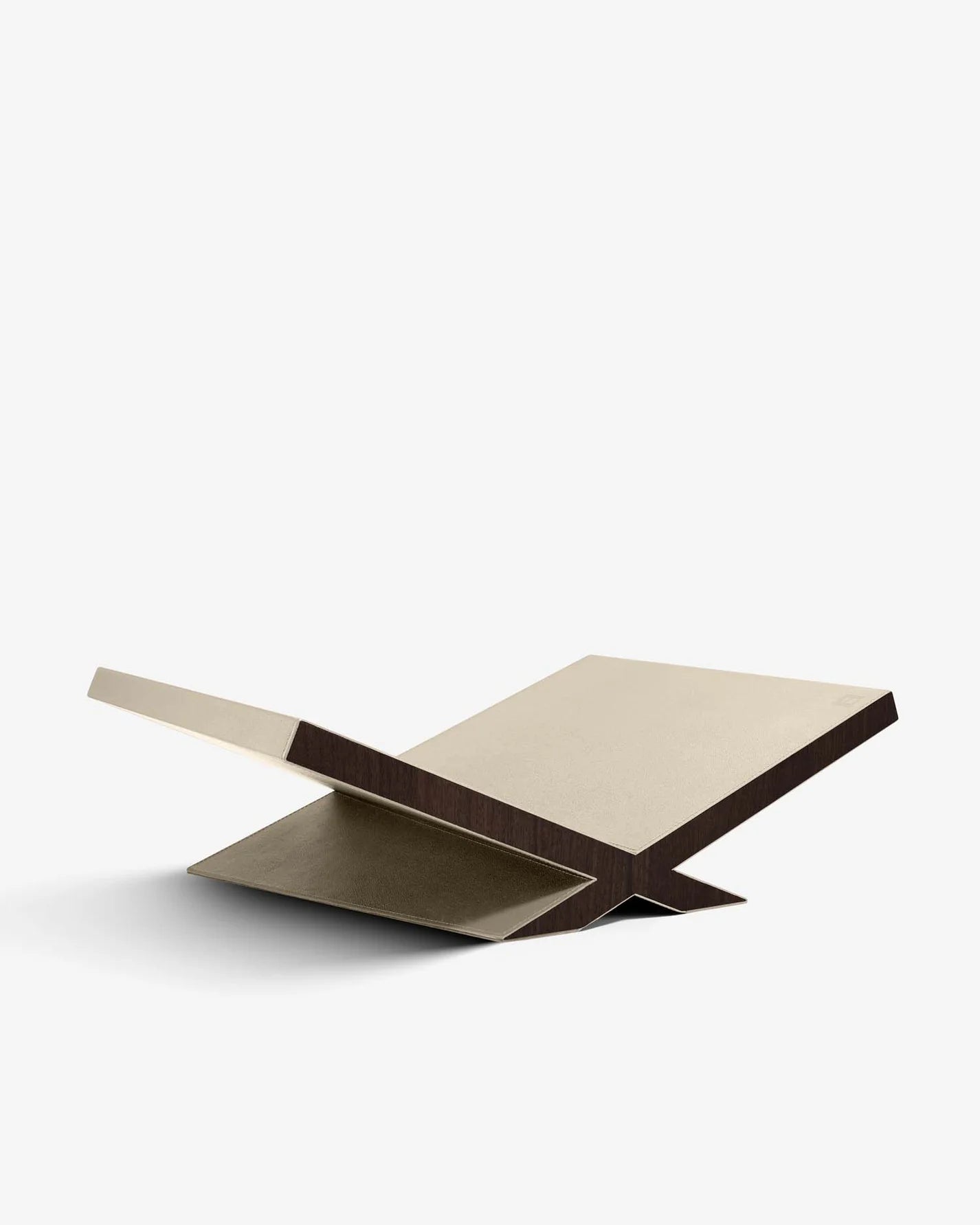 The Culture Bookstand embodies the art of simplicity with elegance. Crafted from luxurious walnut wood and finished with pebbled leather, it commands attention with its bold angles and textured surfaces, gently tilting forward to showcase your book at the ideal angle. Available in Ultimate and Classic sizes, and a curated selection of rich colors, the Culture Bookstand enhances any sophisticated space.