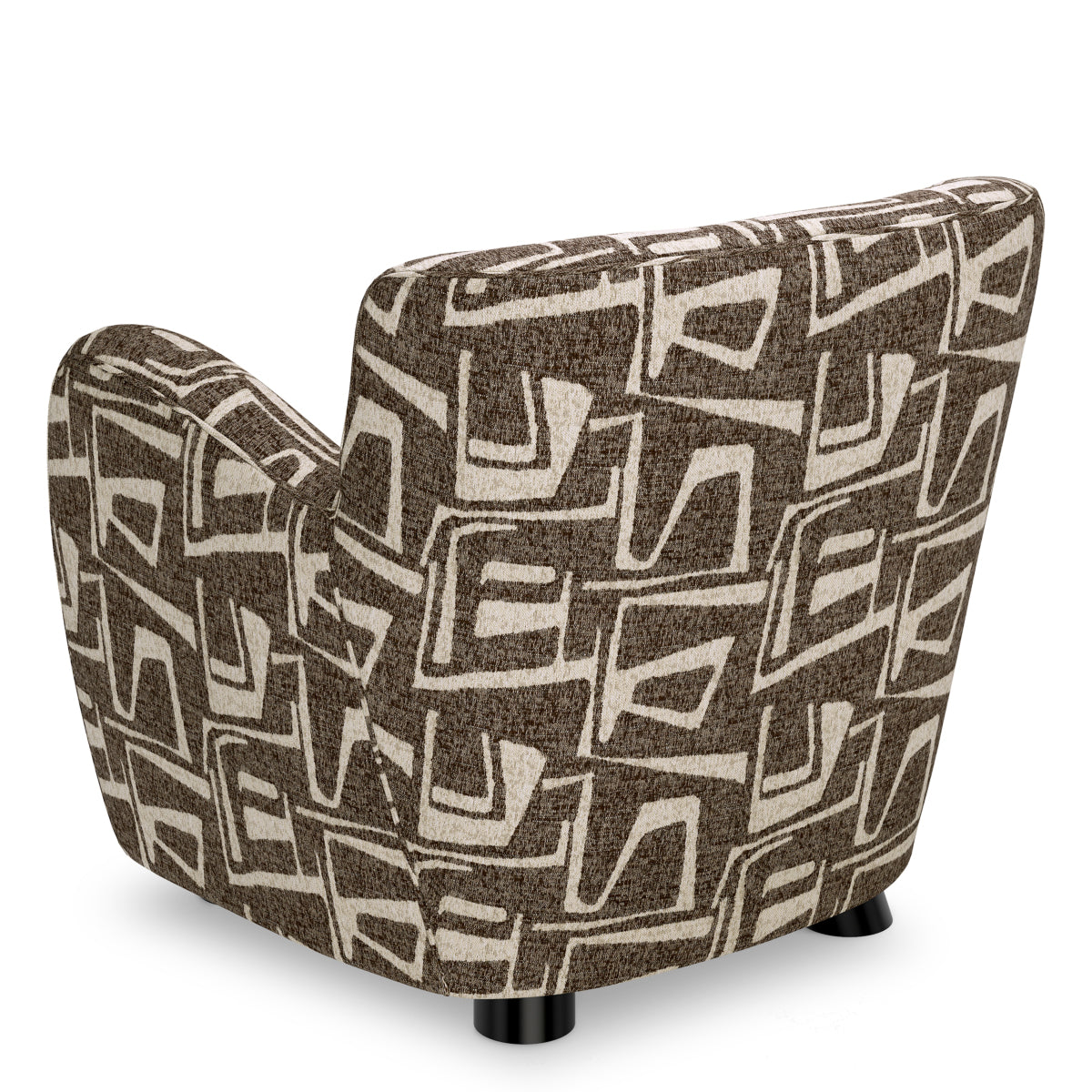 Upholstered in Davenport dark brown, a refined fabric that brightens any interior this chair makes a statement in any room. The high button back and solid black feet create a strong, elegant profile, while the soft upholstery ensures lasting comfort. A versatile piece, Chair Bixby complements both contemporary and classic interiors with ease.W. 87 | H. 80 | SD. 59 | SH. 42 | AH. 65 cm