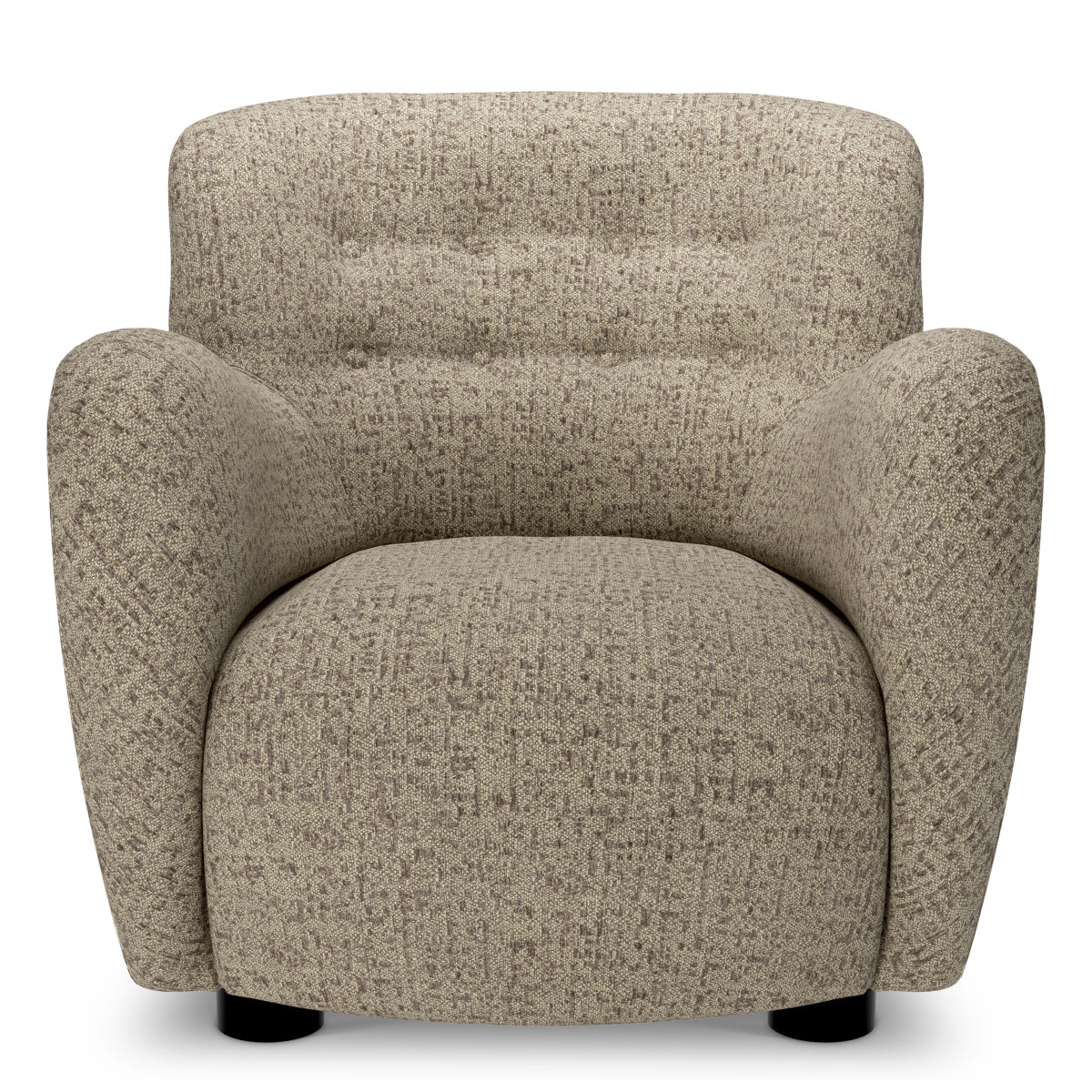 Upholstered in Montclair warm grey, a refined fabric that brightens any interior this chair makes a statement in any room. The high button back and solid black feet create a strong, elegant profile, while the soft upholstery ensures lasting comfort. A versatile piece, Chair Bixby complements both contemporary and classic interiors with ease.