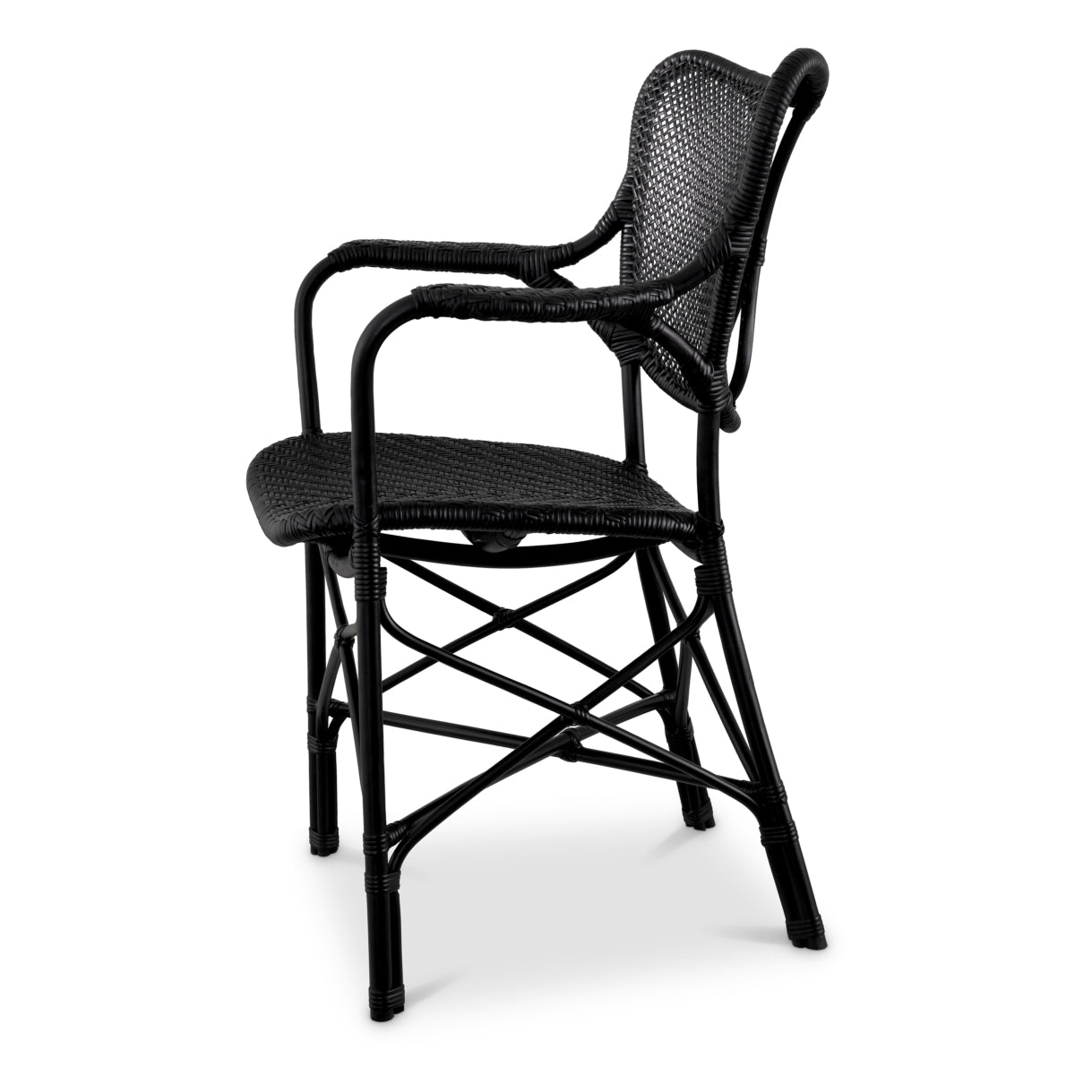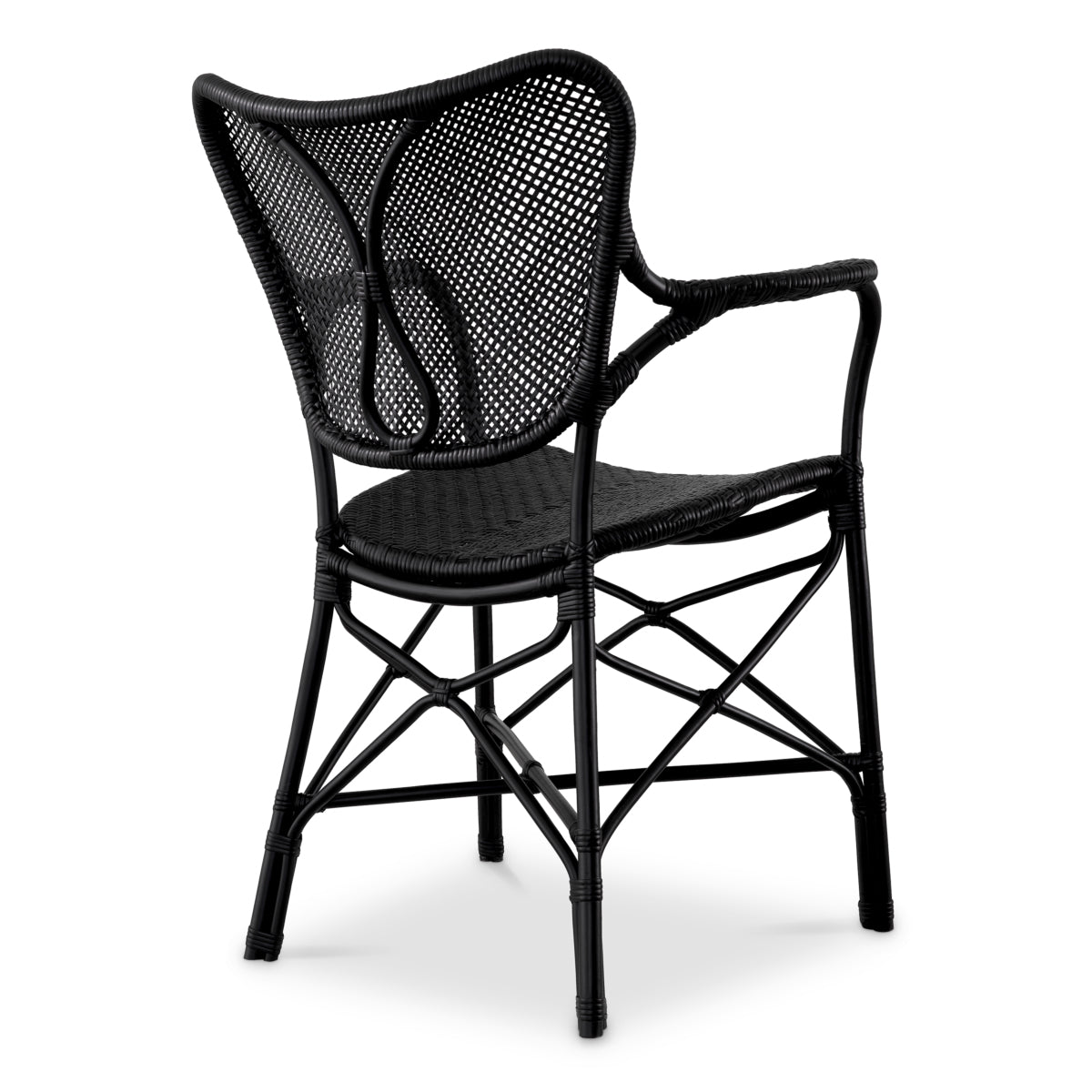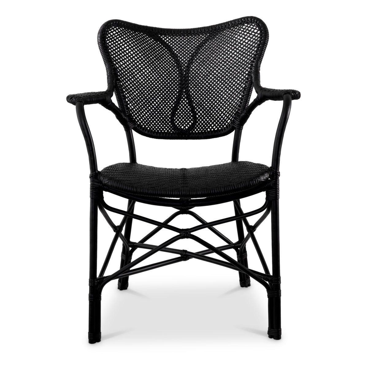 Crafted with durable rattan, this chair offers both comfort and support. The matte black finish adds a touch of sophistication, making it an elegant addition to any dining setting. Embrace a perfect combination of style and functionality with the Colony Dining Chair with arms, a delightful choice for enhancing your dining experience.W. 63 | D. 54 | H. 86 | SD. 43 | SH. 46.5 | AH. 67 cm